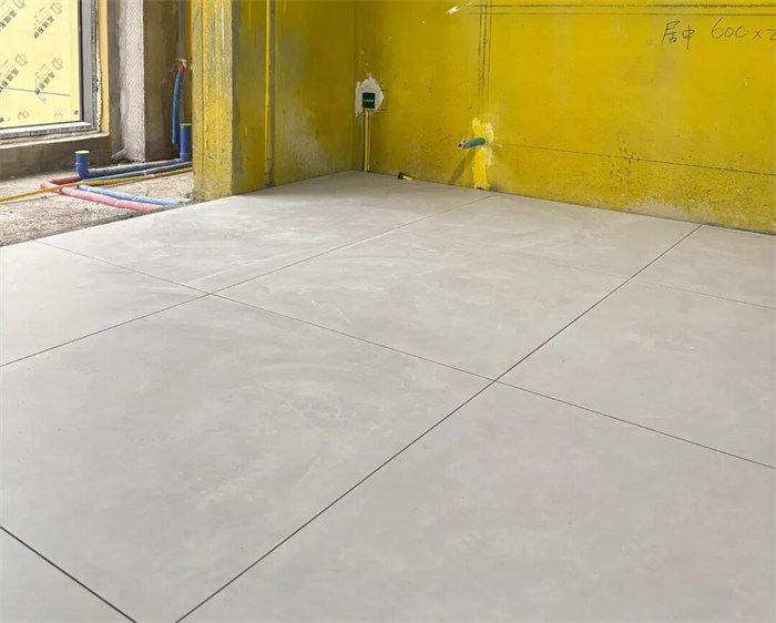 △我們的瓦工師傅正在貼磚,每鋪一塊瓷磚,都會用橡皮錘反復(fù)敲實(shí),確保瓷磚和地面貼合緊密。